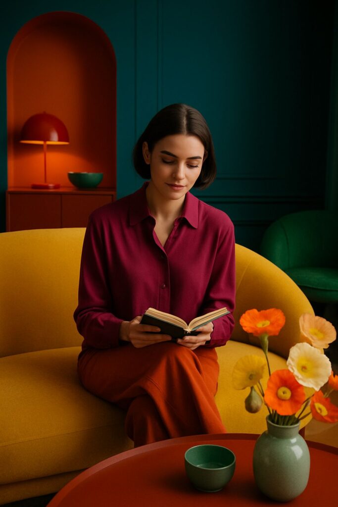 Terrakotta, Salbeigrün, Senfgelb, tiefes Petrol, Weinrot oder sattes Ozeanblau – diese Farben sind nicht laut, aber präsent. Sie schaffen Tiefe, Charakter und ein Gefühl von Geborgenheit.